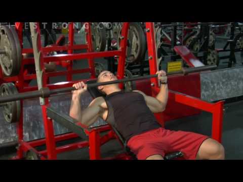 Inhale while lowering the bar or dumbbells and exhale when you return to the starting position with outstretched arms.